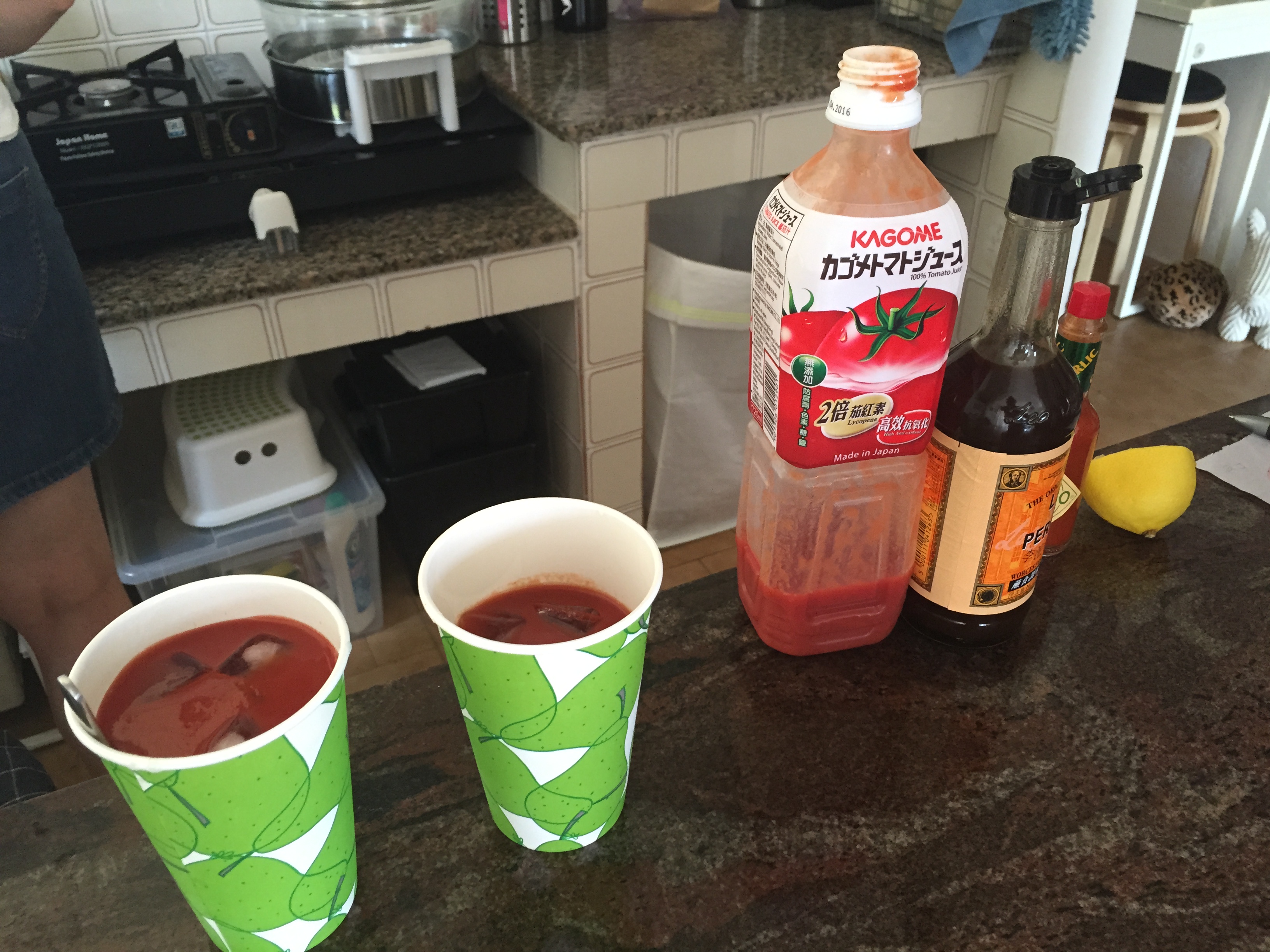 Beth is studying for a Masters in gastronomy and is quite the cook. Bacon, grilled halloumi, hummus, pesto covered bread fresh from her kind upstairs neighbor (say that in Sheung Wan) & topped with a runny egg. Absolutely divine and the perfect lining for a mid morning Asian Bloody.