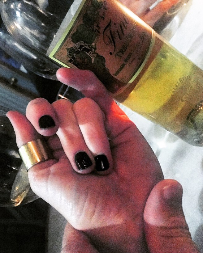 Robin, Abe-my new winemaker friend- and I descended on the bar for what promised to be a full night of Sherry. You see, Alex, owner of Freek’s Mill, tends bar every Tuesday evening at le non-hotel and digs deep down in the cellar from some really impressive Sherries. Robin and I are big Sherry fans. Abe, not to much. Yet.